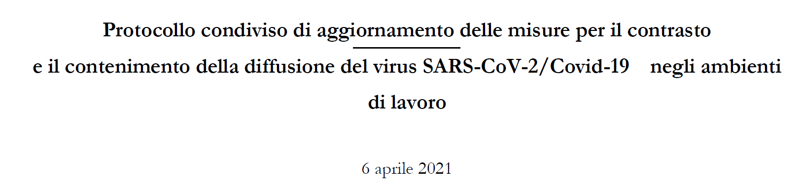 In data 6 aprile 2021 è stata sottoscritta una nuova versione del Protocollo Condiviso di Sicurezza per le misure riguardanti il contrasto e il contenimento della diffusione del virus SARS-CoV-2/COVID-19 negli ambienti di lavoro, che aggiorna e rinnova i precedenti accordi. QUI E' POSSIBILE SCARICARE IL PROTOCOLLO AGGIORNATO Il Protocollo conferma, come nelle precedenti versioni, che il virus SARS-CoV-2 “ rappresenta un rischio biologico generico, per il quale occorre adottare misure uguali per tutta la popolazione ”. Si conferma poi che “ la mancata attuazione del Protocollo, che non assicuri adeguati livelli di protezione determina la sospensione dell’attività fino al ripristino delle condizioni di sicurezza ”. In particolare si indica che le misure restrittive raccomandano: Il “ massimo utilizzo, ove possibile, della modalità di lavoro agile o da remoto da parte dei datori di lavoro privati ", ai sensi dell’articolo 90 (Lavoro agile) del Decreto Legge del 19 maggio 2020, n. 34, convertito, con modificazioni, dalla Legge del 17 luglio 2020, n. 77, nonché di quanto previsto dai protocolli 12 e 13 allegati al citato DPCM 2 marzo 2021; che le attività professionali siano attuate anche mediante modalità di lavoro agile, (non si parla più di smart working) ove possano essere svolte al proprio domicilio o in modalità a distanza; che siano incentivate le ferie e i congedi retribuiti per i dipendenti nonché gli altri strumenti previsti dalla contrattazione collettiva; che siano sospese le attività dei reparti aziendali non indispensabili alla produzione; che siano assunti protocolli di sicurezza anti-contagio, fermo restando l’obbligo di utilizzare dispositivi di protezione delle vie respiratorie previsti da normativa, protocolli e linee guida vigenti; che siano incentivate le operazioni di sanificazione nei luoghi di lavoro; l’obbligo di comunicare il nominativo alla ATS (DIPS) permane solo nel caso di lavoratore che in azienda presenti una temperatura corporea uguale o maggiore di 37,5°C e/o sintomi simil influenzali. Il protocollo ritiene inoltre che è altresì, opportuno: garantire il massimo utilizzo da parte delle imprese di modalità di lavoro agile per le attività che possono essere svolte al proprio domicilio o in modalità a distanza, nonché per quelle non sospese; raccomandare che siano limitati al massimo gli spostamenti all’interno dei siti e contingentato l’accesso agli spazi comuni; assicurare, fermo restando il mantenimento della distanza interpersonale di almeno un metro, che negli spazi condivisi vengano indossati i dispositivi di protezione delle vie aeree, fatta salva l’adozione di ulteriori strumenti di protezione individuale già previsti indipendentemente dalla situazione emergenziale; L’attuale protocollo condiviso riporta diverse novità r iguardanti l’uso dei dispositivi di protezione individuale nel punto 6 del Protocollo, dove si indica che “ in tutti i casi di condivisione degli ambienti di lavoro, al chiuso o all’aperto, è comunque obbligatorio l’uso delle mascherine chirurgiche o di dispositivi di protezione individuale di livello superiore. Tale uso non è necessario solo nel caso di attività svolte in condizioni di isolamento ”. Altre novità riguardano poi il punto 8 e le trasferte: scompare infatti il riferimento alla sospensione/annullamento e si indica che “ è opportuno che il datore di lavoro, in collaborazione con il MC e il RSPP, tenga conto del contesto associato alle diverse tipologie di trasferta previste, anche in riferimento all’andamento epidemiologico delle sedi di destinazione ”. Un’altra novità è nel punto 2 ed è relativa alla riammissione al lavoro dopo il contagio: “ i lavoratori positivi oltre il ventunesimo giorno saranno riammessi al lavoro solo dopo la negativizzazione del tampone molecolare o antigenico ”. Milano, 14/04/2021 Autore: Marano Dr. Carmelo (Biologo)
